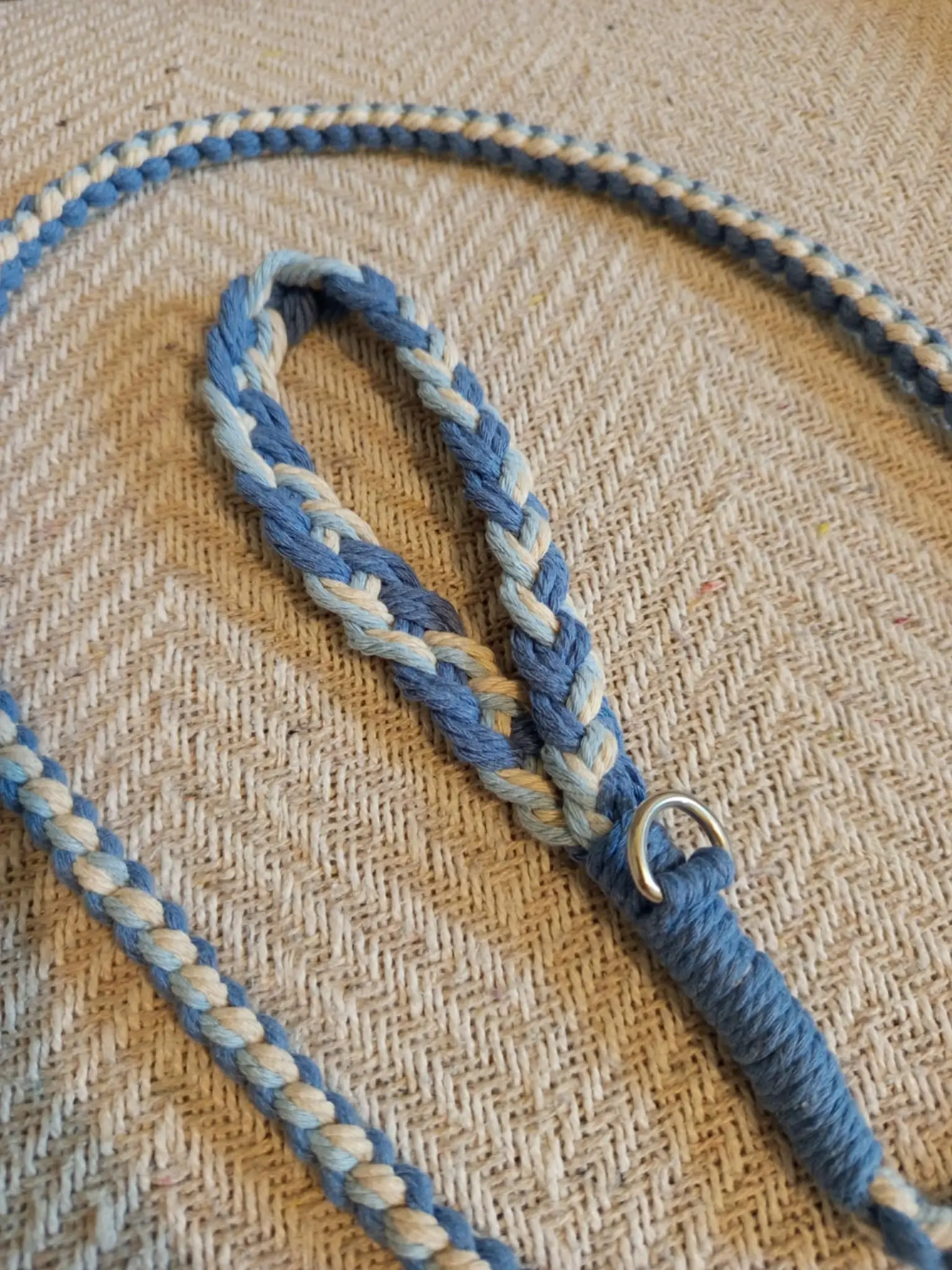 Alliez style, confort et sécurité avec la laisse pour chien en macramé Modèle Tandem. Une laisse en macramé tressée à la main avec soin. Conçue pour les amoureux des balades à deux, elle accompagne votre chien avec douceur et élégance.