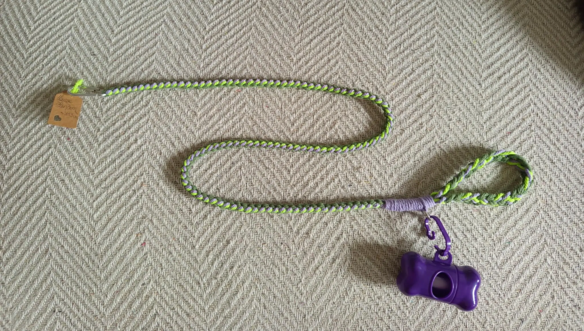 Laisse pour toutou – Modèle Tandem – mauve, kaki et vert fluo