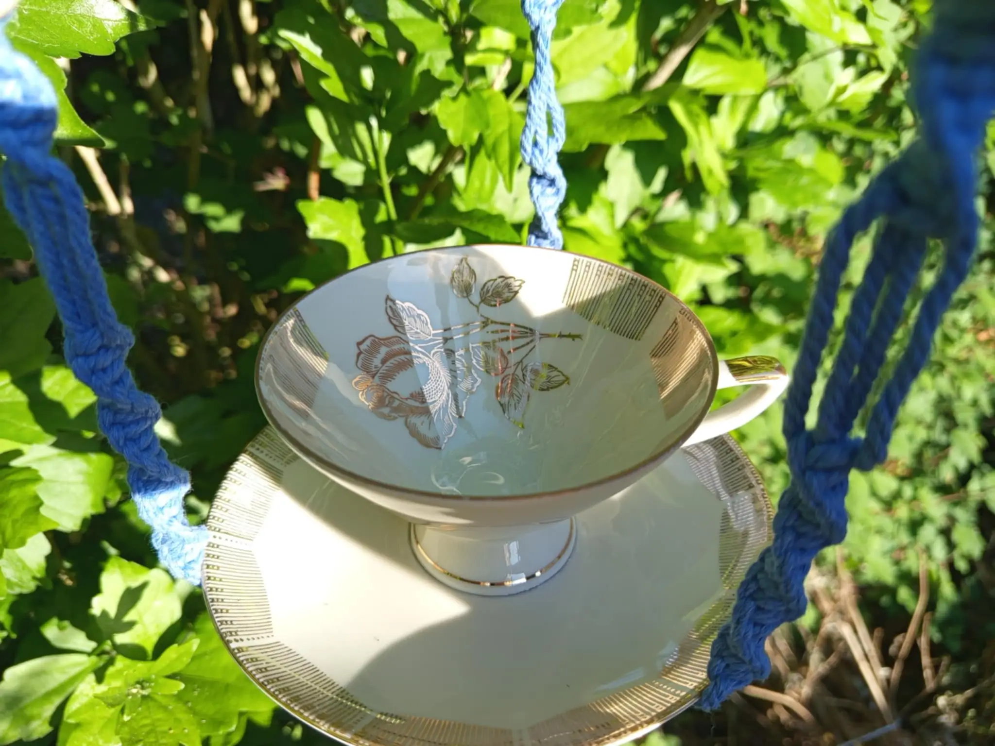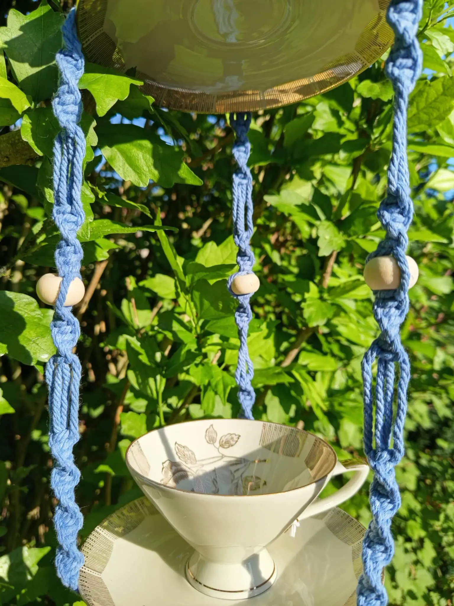 Chaque mangeoire est confectionnée avec amour, ornée d’un tissage délicat de nœuds en forme de spirale.