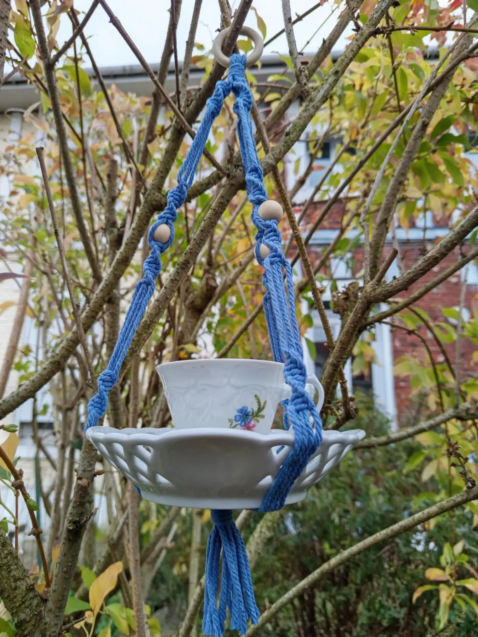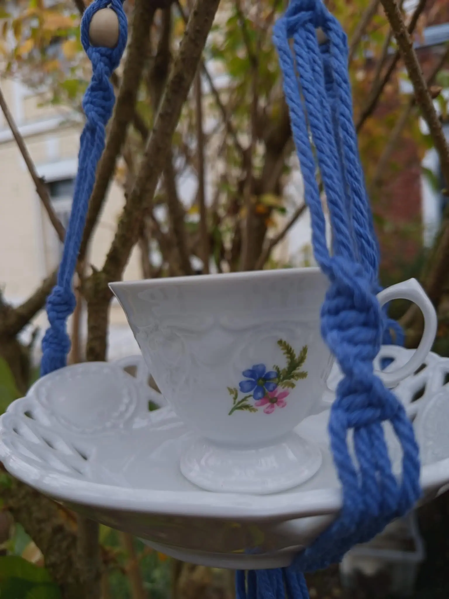 Chaque mangeoire est confectionnée avec amour, ornée d’un tissage délicat de nœuds en forme de spirale. Comme un clin d’œil à la beauté de la nature.