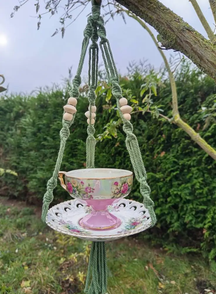 Chaque mangeoire est confectionnée avec amour, ornée d’un tissage délicat de nœuds en forme de spirale. Comme un clin d’œil à la beauté de la nature.